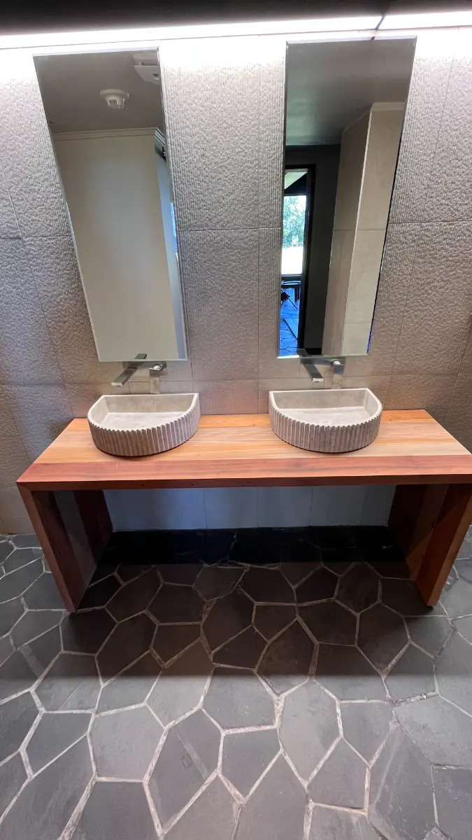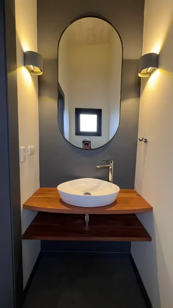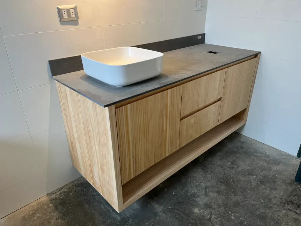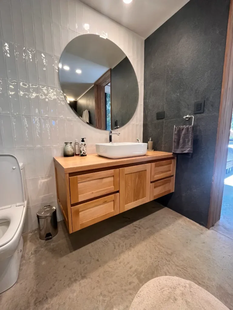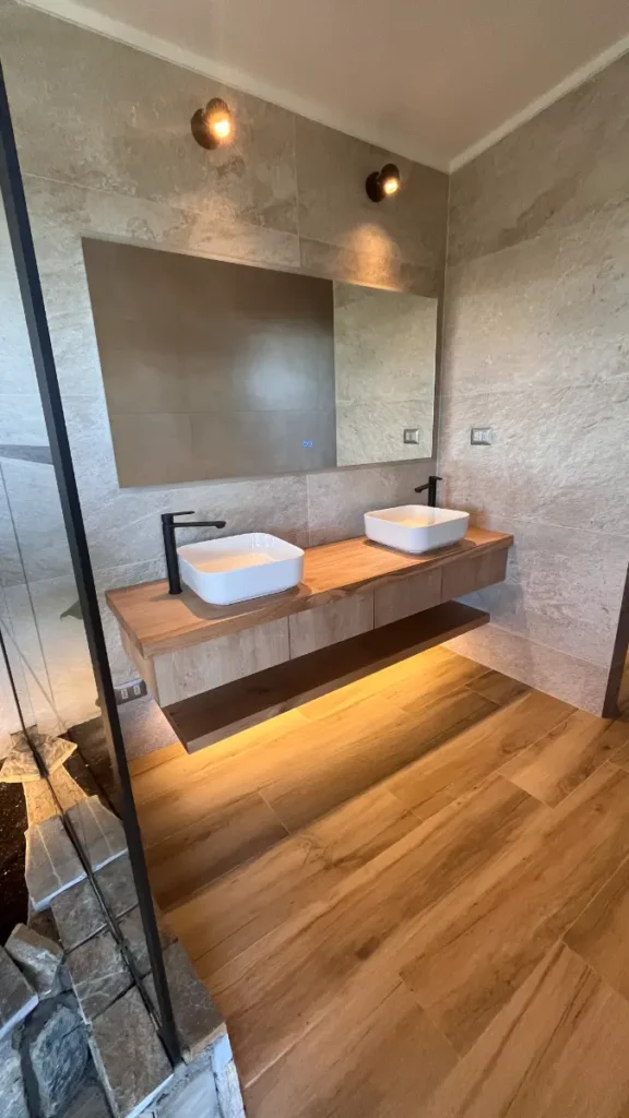 Creamos vanitorios, gabinetes y muebles de baño personalizados con maderas tratadas especialmente y acabados resistentes a la humedad.