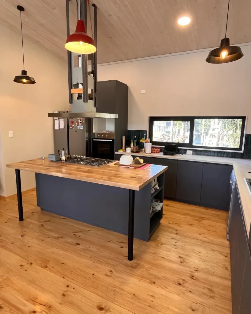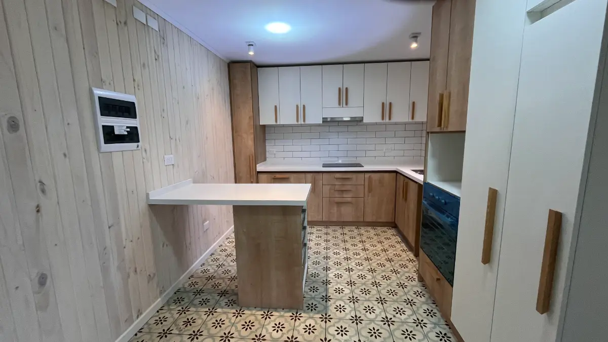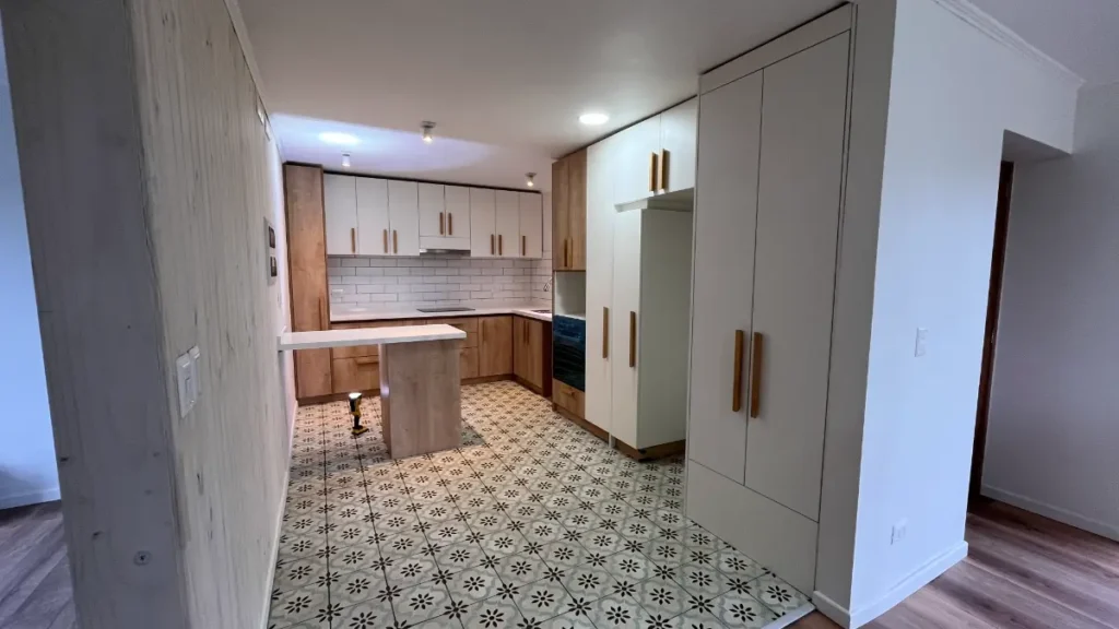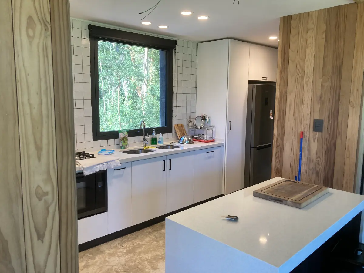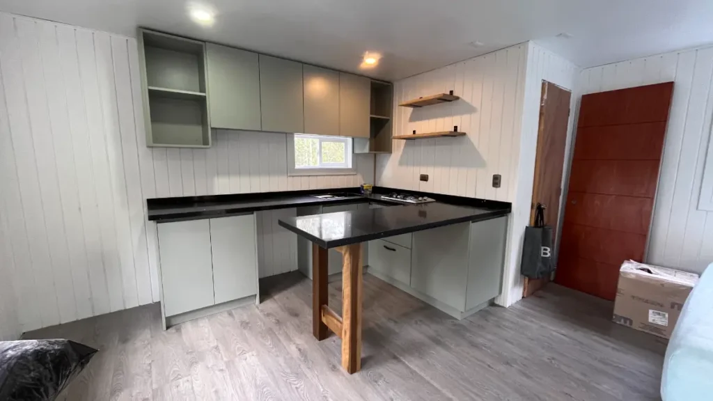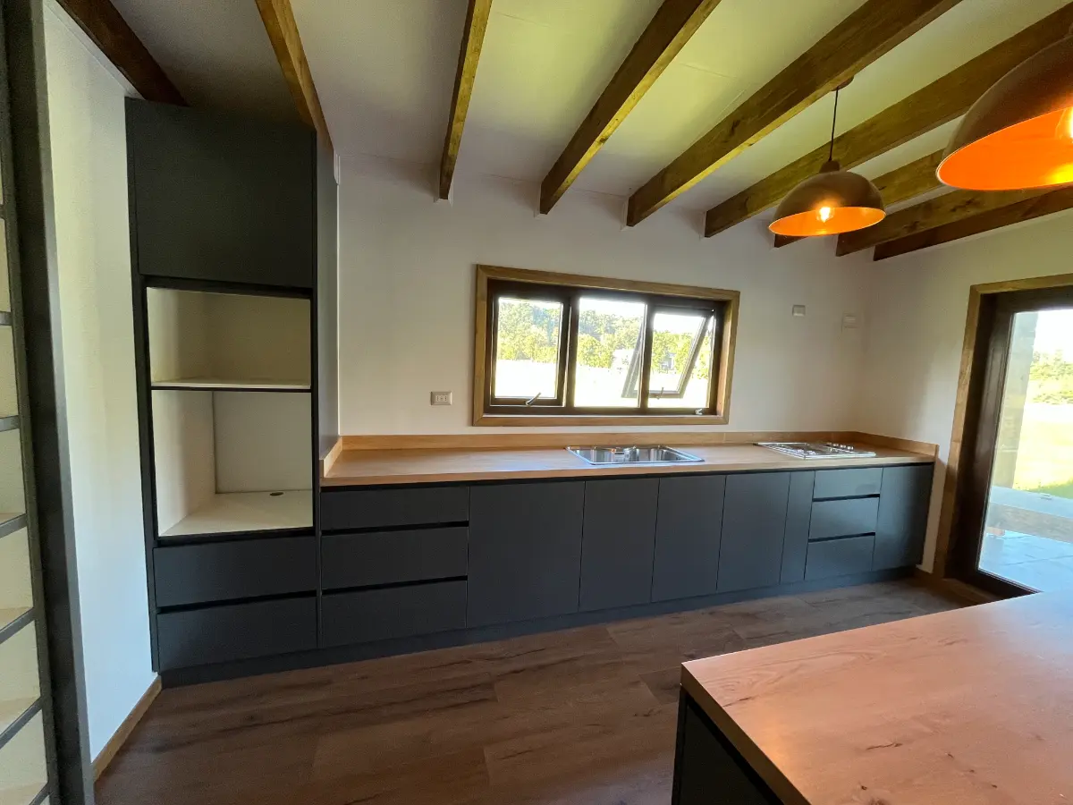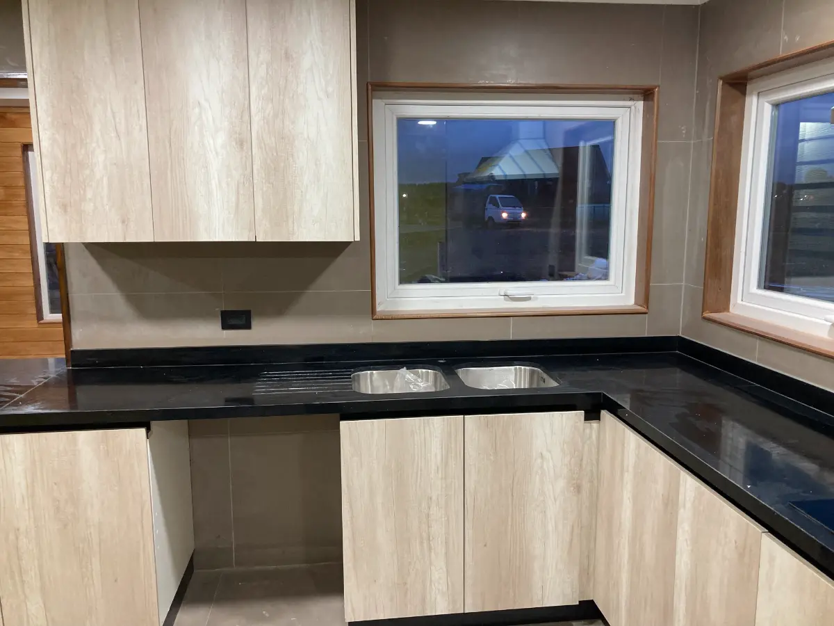 Nos especializamos en proyectos únicos. Si tienes una cocina pequeña en departamento o un espacio amplio con vista al lago, sabemos cómo aprovechar cada centímetro. Usamos maderas que resisten bien la humedad de nuestra región, con terminaciones prolijas y ese toque cálido que solo da la madera verdadera. El resultado es una cocina hecha especialmente para ti y tu familia.