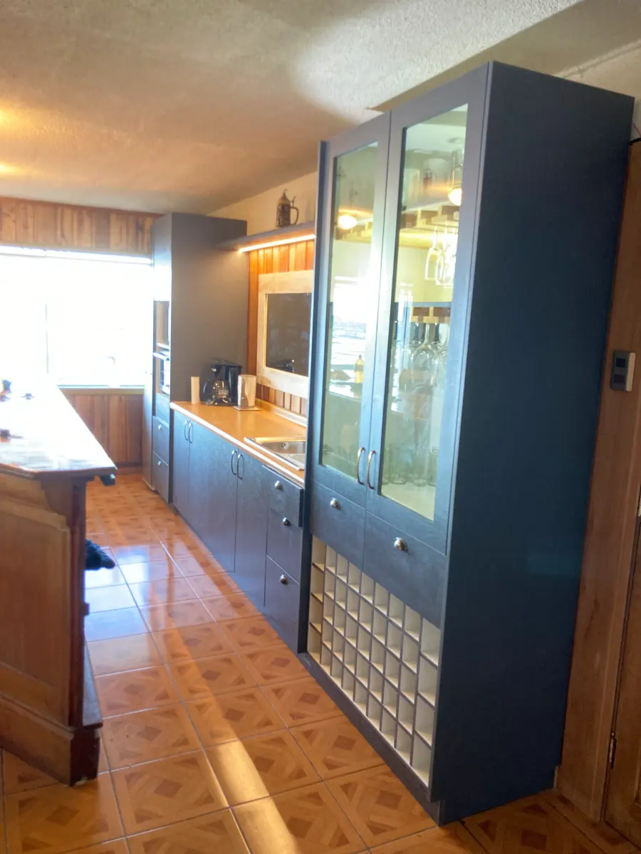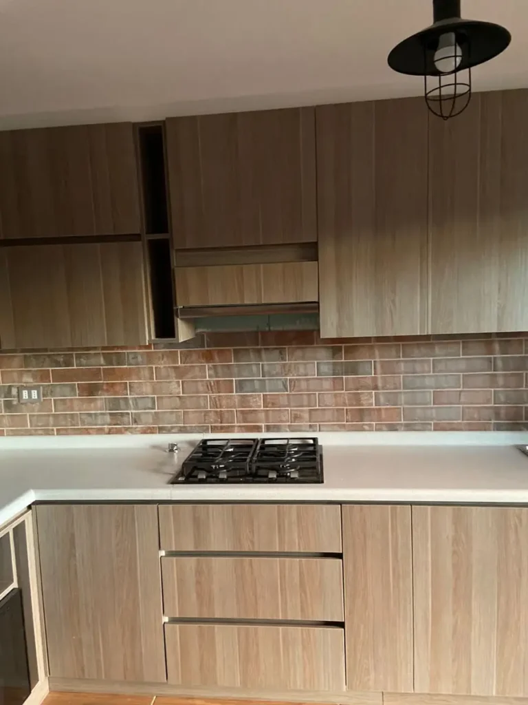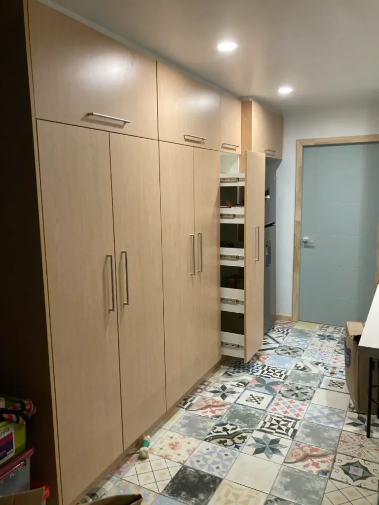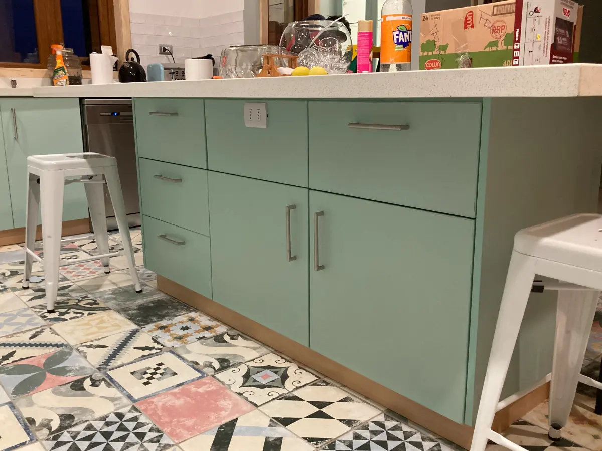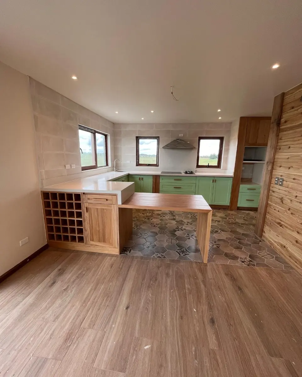 Nos especializamos en proyectos únicos. Si tienes una cocina pequeña en departamento o un espacio amplio con vista al lago, sabemos cómo aprovechar cada centímetro. Usamos maderas que resisten bien la humedad de nuestra región, con terminaciones prolijas y ese toque cálido que solo da la madera verdadera. El resultado es una cocina hecha especialmente para ti y tu familia.