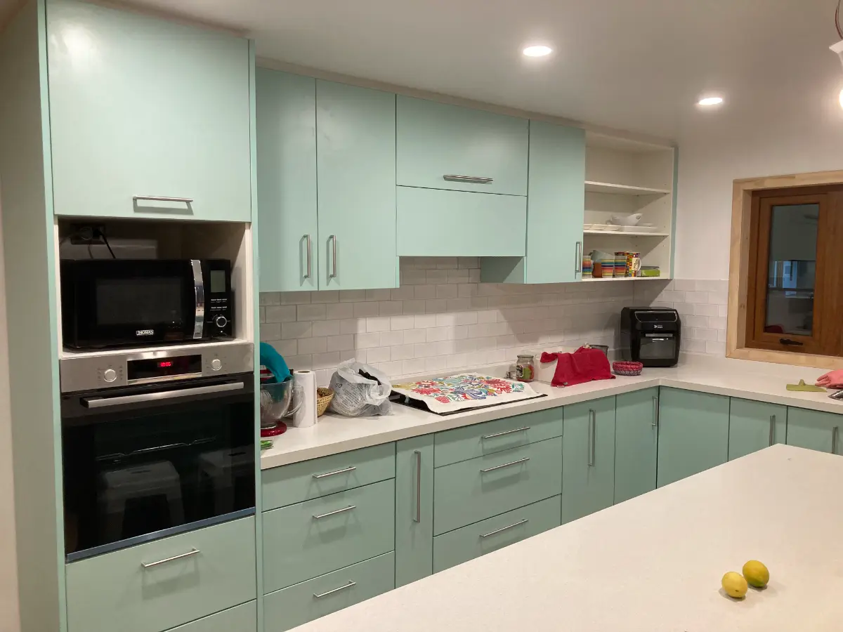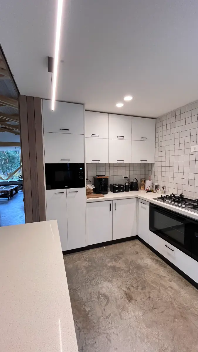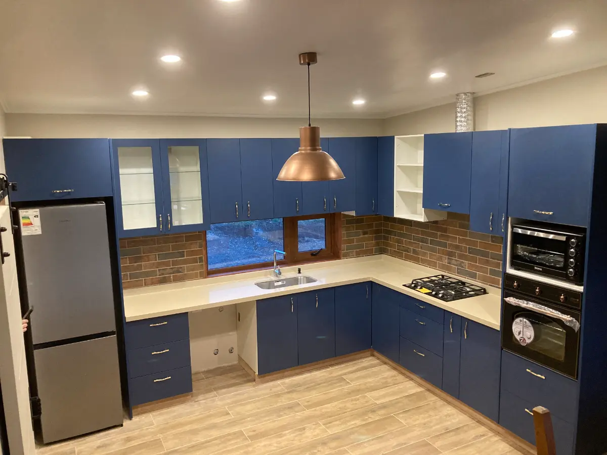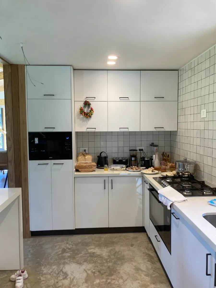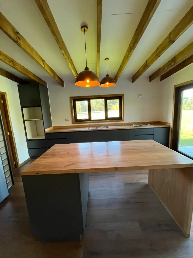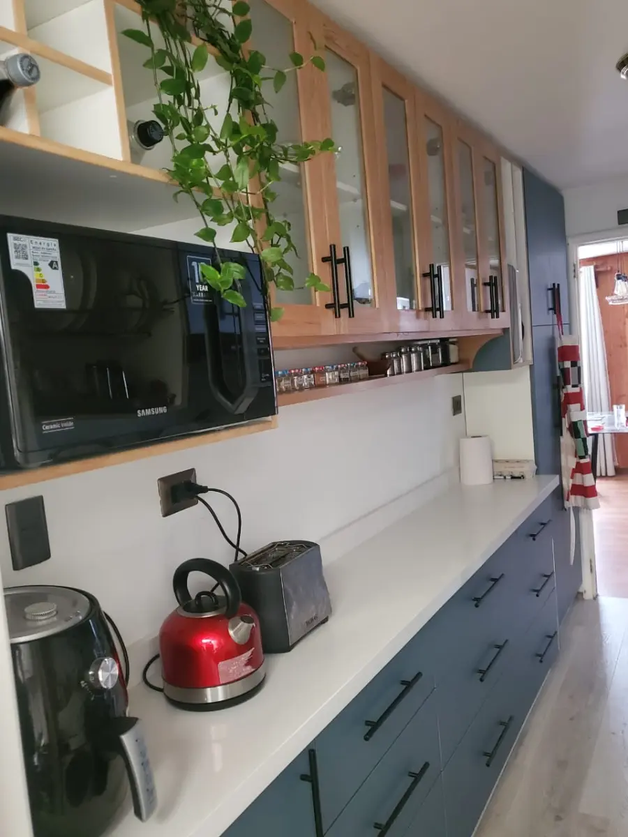 Nos especializamos en proyectos únicos. Si tienes una cocina pequeña en departamento o un espacio amplio con vista al lago, sabemos cómo aprovechar cada centímetro. Usamos maderas que resisten bien la humedad de nuestra región, con terminaciones prolijas y ese toque cálido que solo da la madera verdadera. El resultado es una cocina hecha especialmente para ti y tu familia.